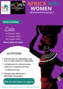 This year, Africa Wiki Women (AWW) is excited to actively participate in the #SheSaid campaign as part of the initiative’s ongoing commitment to recognizing and celebrating the achievements of remarkable women leaders across the African continent and solving the problem of gender inequality and underrepresentation of African women in the Wikimedia space. AWW believes in the power of knowledge sharing and amplifying the voices of inspirational women.